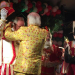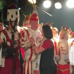 Zum diesjährigen Prinzentreffen des Dachverbands Rheinische Karnevals-Korporationen (RKK) waren 50 Tollitäten aus dem ganzen Rheinland nach Hillesheim gekommen. Die gut gefüllt Markthalle mit 600 Jecken, Prinzen, Prinzessinnen, Dreigestirnen, Hofstaat und Vorständen begrüßten alle Tollitäten fröhlich mit Applaus – auch unser Dreigestirn, das sich nahtlos einreiht und auf der Bühne eine super Figur abgab – als hätten sie noch nie etwas anderes gemacht ;-).