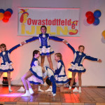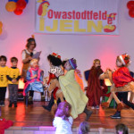 Der Vorstand der Owastodtfelder Igeln war mit dem 1. Kinderkarneval des noch jungen Vereins mehr als zufrieden. Zu Recht! Ein einziger Blick in das bunt dekorierte Bürgerhaus reichte, um sofort gute Laune zu bekommen. Denn in der Halle herrschte ein fröhlich-buntes Gewusel: Der Einladung zum großen Kinderkarnevalsnachmittag der Owastodtfelder Ijeln waren viele Kinder und Eltern gefolgt. Es drängelten sich kleine Prinzessinnen und Bienen, Indianer, Cowboys und Fantasiegestalten – auch Superman und Panzerknacker waren vertreten. Alles lief dank der guten Vorplanung bestens. Die 15 wilden Bienen (Trainerinnen Christiane May und Nicole Thömmes) begeisterten die Jecken genauso wie die kleine Garde Neroth (Trainerinnen: Jenny Hey und Eva Klaus) und die Kindergarde Stadtfeld (Trainerin Anna Nosbers, Betreuerinnen Simone Kober und Biggi Thömmes).  Auch der Kindergarten Oberstadtfeld bot mit 22 Kindern eine lustige Mitmach-Geschichte für alle Zuschauer sowie ein Lied, bei dem die Kinder kräftig mitsangen. Die Auftritte der Mini Dreesklickerten  (Trainerinnen Steffi Novara und Monique Broschek)  sowie der vereinseigene Garde Oberstadtfeld (Trainerin Tabea Scholzen) erhielten ebenfalls viel Applaus.
