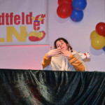 Auf der Bühne führten Louise Willems und Pia Schaaf als Moderatorinnen souverän durch das närrische Programm und ließen es sich nicht nehmen, in einem Sketch als Maulwurf und Rapunzel sowie als ET und Eisbär die Jecken im Saal zu unterhalten. Den Text zu „Atemlos“ von Helene Fischer hatten die zwei dann auch noch „neugeschrieben“: „Oberstadtfeld das sind wir und die Kinder, die sind hier. Oberstadtfeld unser Verein, wir sorgen für Jeck-erein“. Beim abschließenden großen Finale kamen nochmal alle Kinder sowie der Vorstand auf die Bühne. Danach klang ein rundum schöner und gelungener Karnevalsnachmittag mit viel Spaß für alle Beteiligten langsam aus.