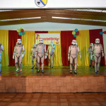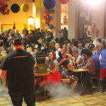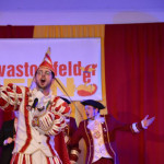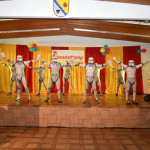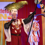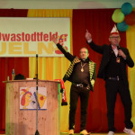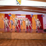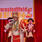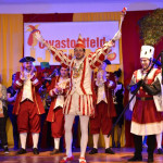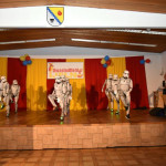 Danach folgte ein vielfältiges Programm für die Jecken: Olaf Biesenbach als ´Hennes de Handwerker´ gab den Jecken eine Einführung in die Welt der Technik während Armin Willems ´Aus dem Leben eines Pastors´ berichtete und später Herbert Schäfer als ´Armer Teufel´ aus dem Nähkästchen plauderte. Die Jecken belohnten die Redner mit viel Applaus und fröhlichen Lachern. Neben den Tänzen der Funkengarden aus Oberstadtfeld, Neroth und Wallenborn zeigte die Showtanzgruppe Walsdorf eine farbenfrohe Darbietung mit toller Choreographie. Natürlich ließ es sich auch das Dreigestirn nicht nehmen, neben Gesang mit einer Tanzeinlage das Publikum von den Sitzen zu reißen und ihre Vielseitigkeit nicht nur beim Feiern unter Beweis zu stellen. Abschließend kamen die imperialen Sturmtruppen aus Neroth auf die Bühne, bei deren Auftritt die Kämpfer regelrecht durch die Luft flogen.